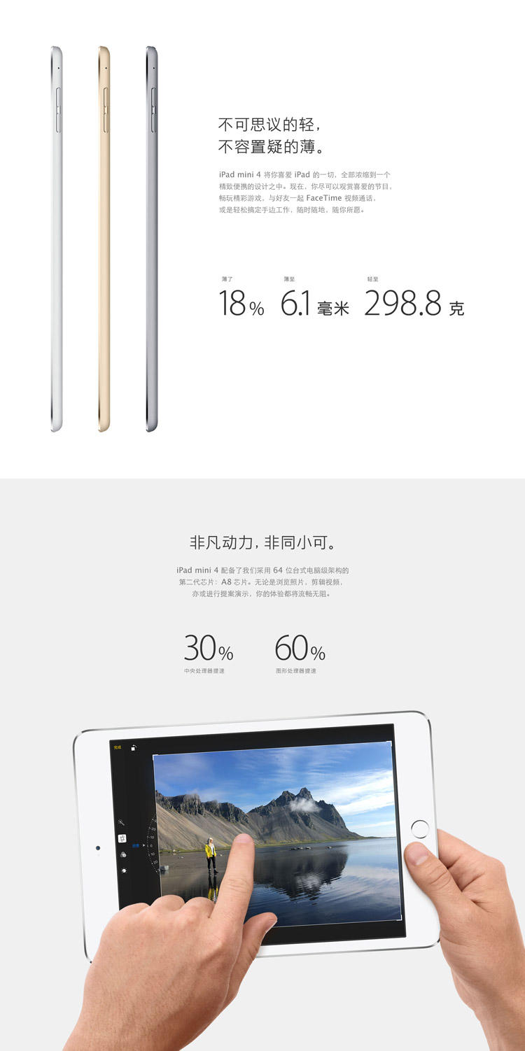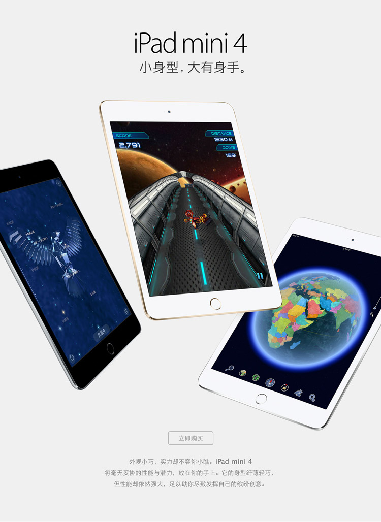 Apple iPad mini 4 平板电脑 7.9英寸(128G WLAN版/A8芯片/Retina显示屏/Touch ID技术 MK9Q2CH)金色