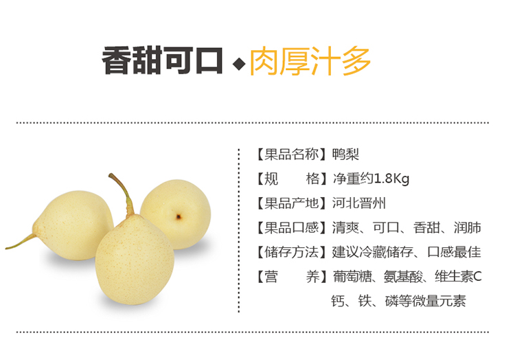 花果山 甜鸭梨 6-8个 净重约1.8kg 新鲜水果