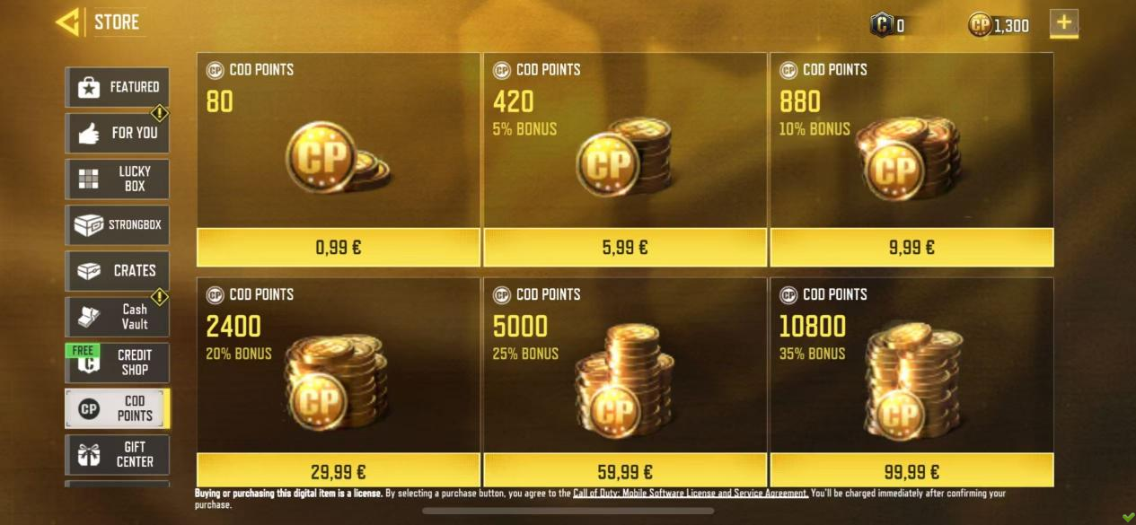 4. اختر كمية نقاط COD التي تريد شراؤها.