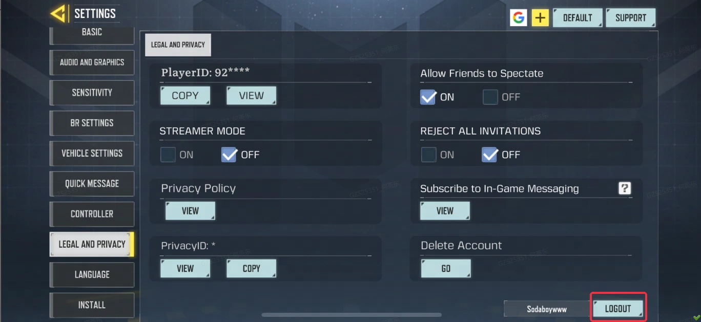 3.شراء/بعد إكمال الشحن، اخرج من حسابك وامسح سجلات تسجيل الدخول